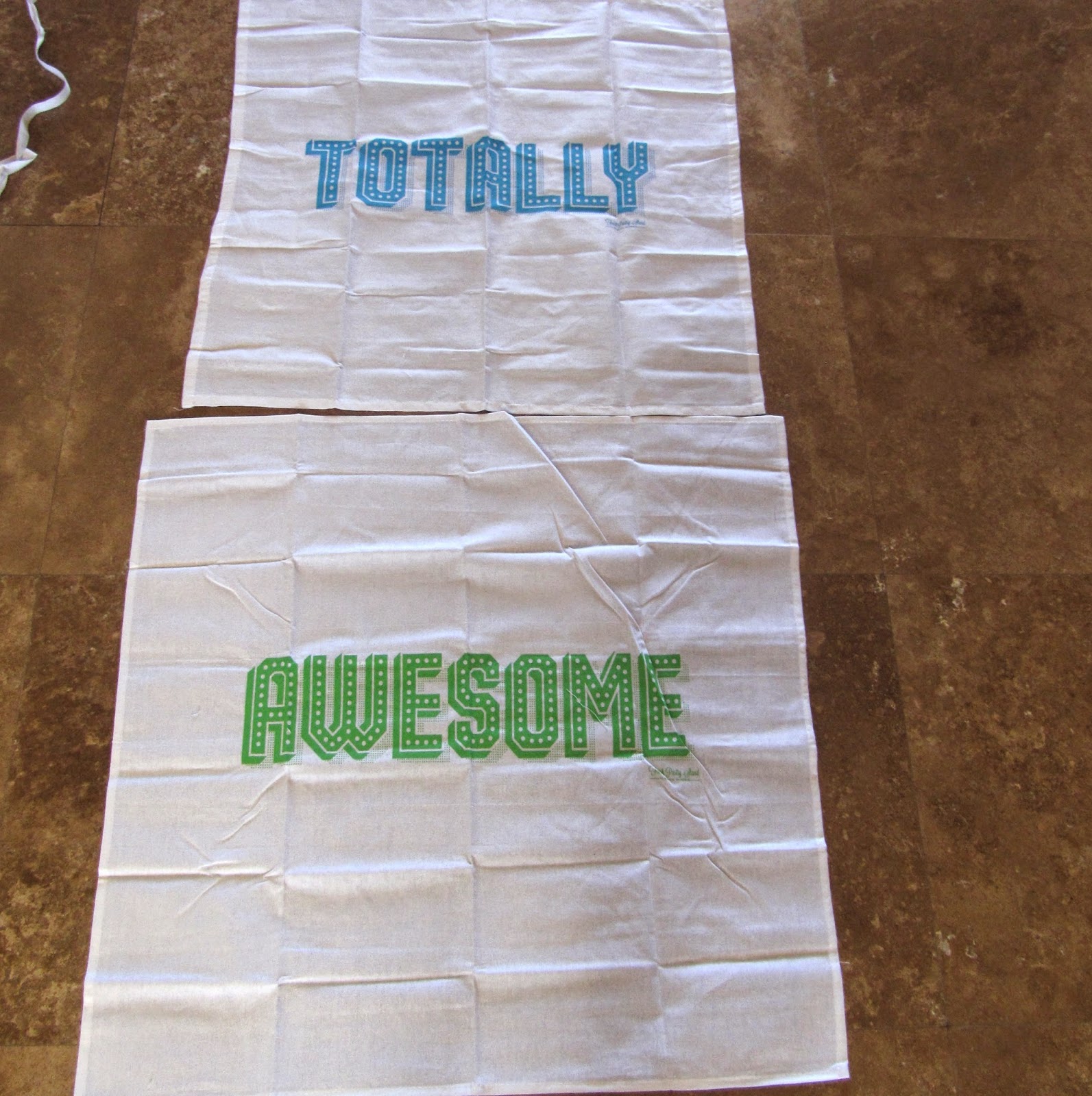 I wasn't sure what these were at first. I dig the font, but they aren't a great fit for my kitchen decor so they will be lovingly placed in a new home soon. They're pretty dang big and I'm sure they adequately dry dishes and mop up spills.